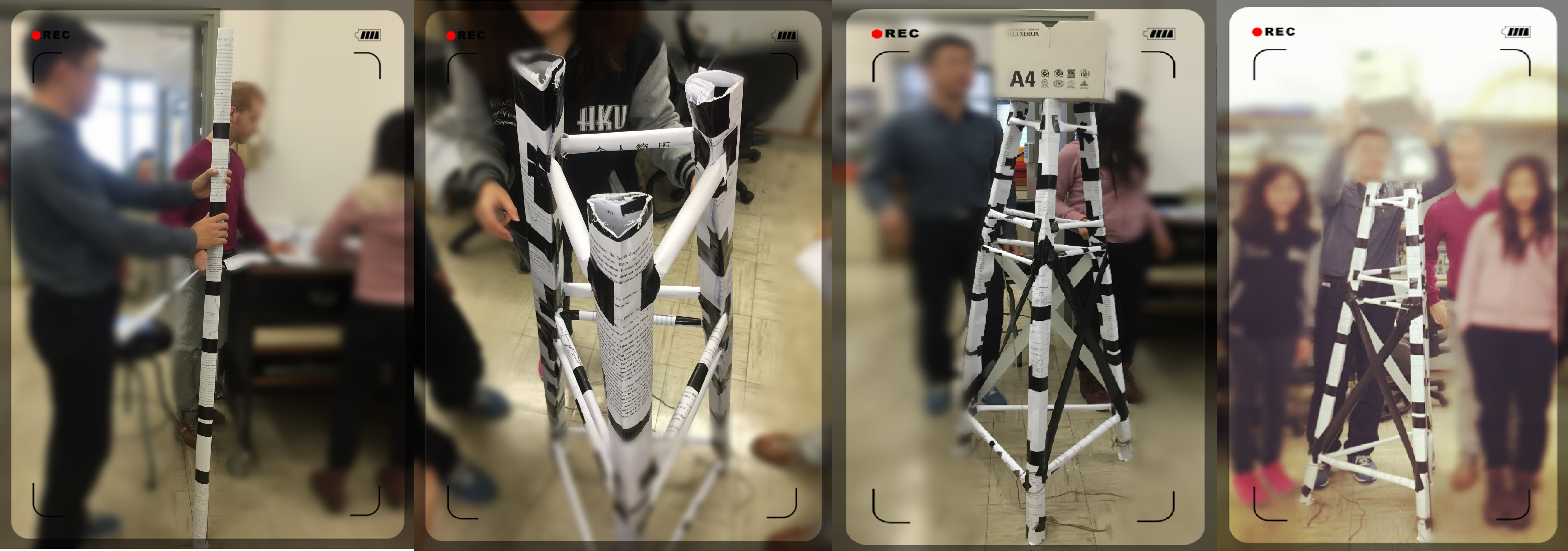 每一參賽隊伍由4名同學組成,每隊要利用膠帶和200張A4舊紙,建造高達約1.7米的紙塔結構來承受一定的重量。根據紙塔的高度﹑承載力﹑輕重﹑美觀以及創意,專業評審團會為各參賽隊打分評出優勝的隊伍。