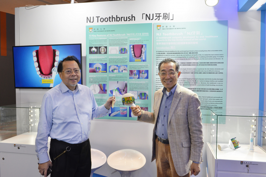 NJ Toothbrush, innovated by an HKU Faculty of Dentistry research team led by Dr TC Ng (left) and Professor Jin Lijian