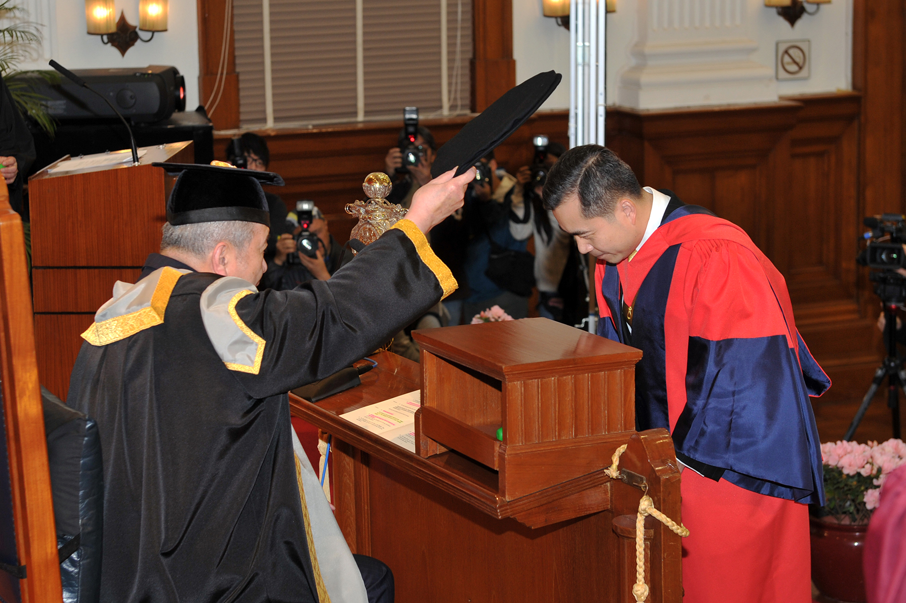 The Pro-Chancellor of the University of Hong Kong (HKU) Dr the Honourable Sir David Li Kwok Po conferred honorary degrees upon five outstanding individuals at the 190th Congregation held today (March 18, 2014) in Loke Yew Hall.