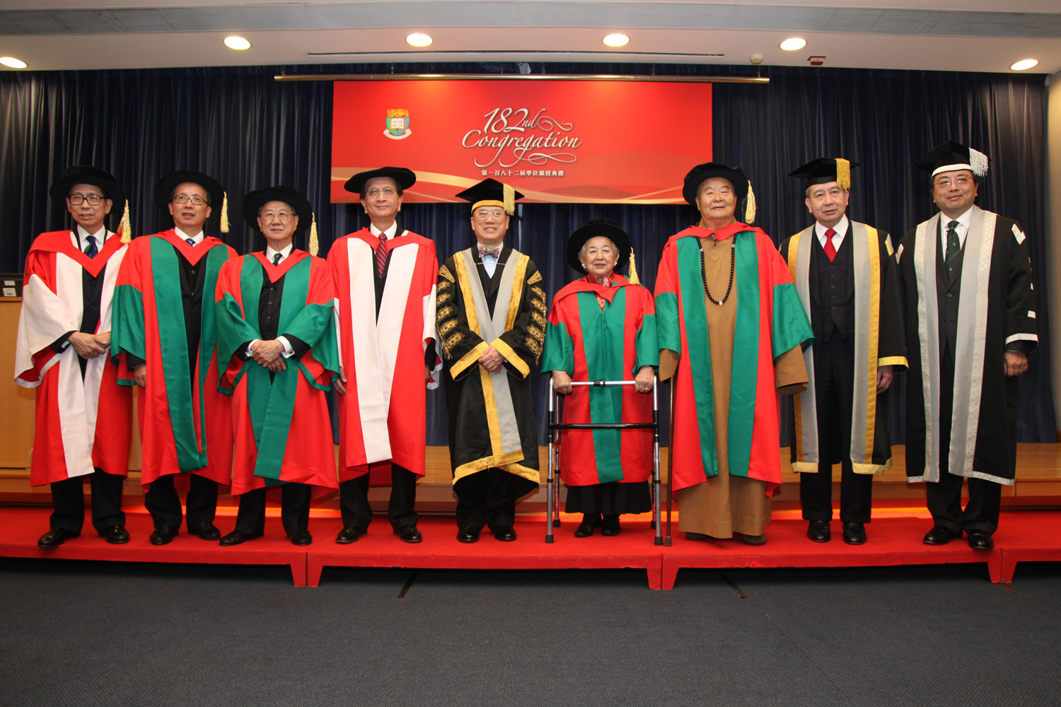 Dr the Honourable Donald Tsang Yam Kuen, Chancellor of the University of Hong Kong (HKU), conferred honorary degrees upon five outstanding individuals at the 182nd Congregation held at Loke Yew Hall today (Thursday). Honorary Degrees are awarded to individuals in recognition of their distinguished service and commitment to the University, the community, and to academia. They are also conferred to those who have made valuable intellectual, social and cultural contributions to society and the world.