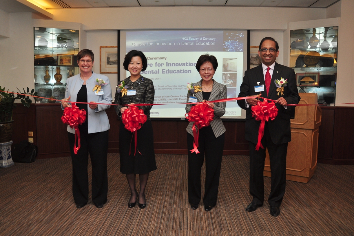 The Faculty of Dentistry of HKU hosted the opening ceremony of the Centre for Innovation in Dental Education (CIDE) yesterday (28 February 2011) at 6pm at Prince Philip Dental Hospital. Around 50 guests attended the ceremony including the Guest of Honour Professor Amy B.M. Tsui, Pro-Vice-Chancellor and Vice President (Teaching and Learning) of HKU; Professor Lakshman P. Samaranayake, Dean of Faculty of Dentistry of HKU and two directors of CIDE: Dr Cynthia K.Y. Yiu (cum Associate Dean of Faculty of Dentistry for undergraduate education) and Dr Susan Bridges (cum Assistant Dean of Faculty of Dentistry for curriculum development).