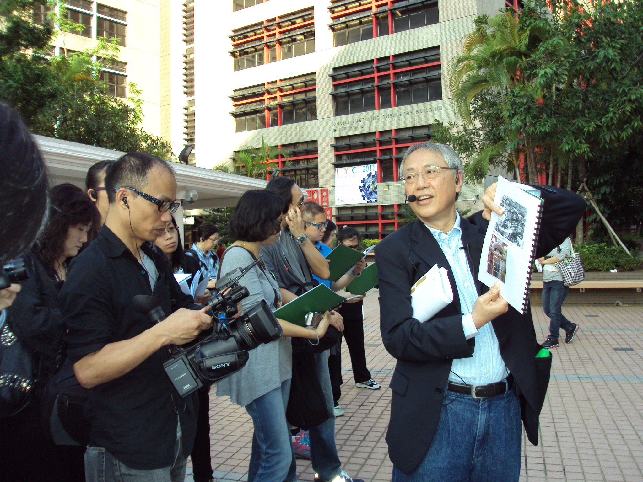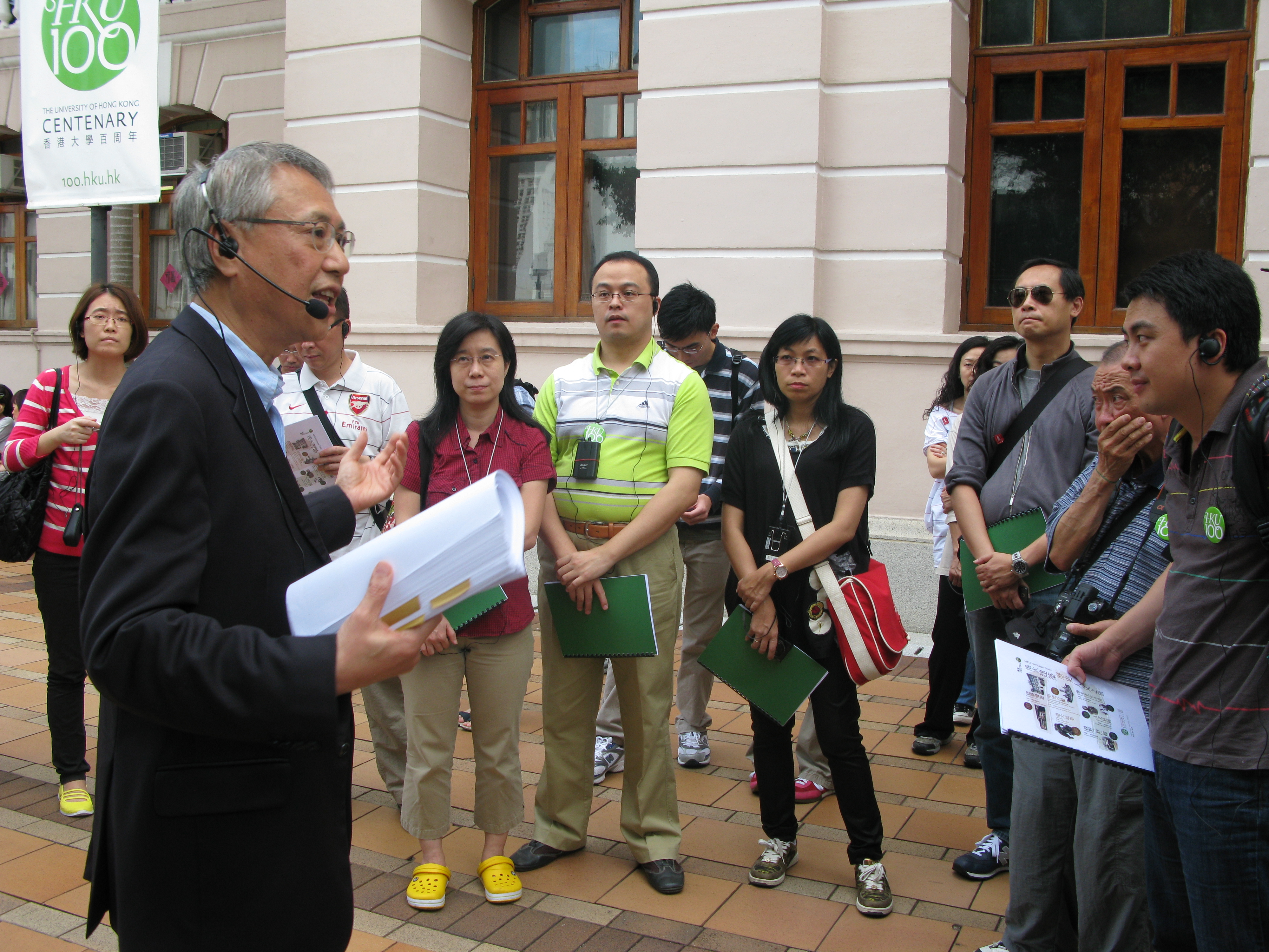 The first tour was held today (November 19). Featuring the University's historic buildings, participants followed Professor David Lung, Dean of the Faculty of Architecture, to visit different buildings in HKU, including the Main Building, the oldest architectural structure at HKU main campus, Sun Yat-sen Plaza, Lily Pond, Robert Black College which incorporated Chinese style architectural elements, the University Lodge which was designed and constructed in Art Deco style, and the University Hall of neo-gothic style.