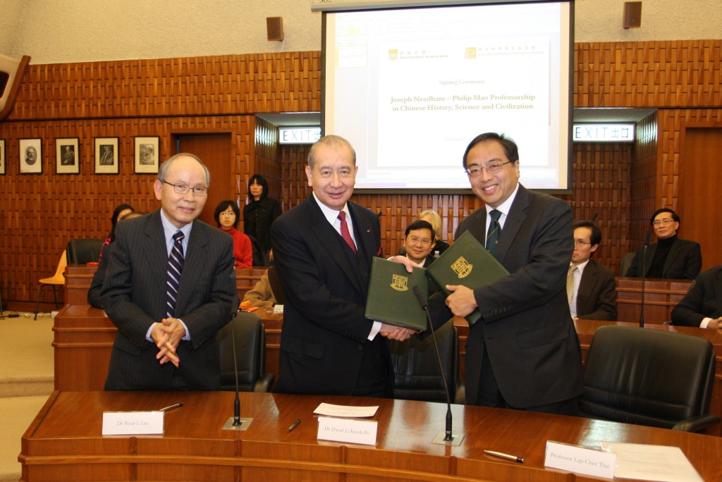 The University of Hong Kong and the East Asian History of Science Foundation Hong Kong (EAHSF HK) are pleased to announce the signing of a formal agreement to establish a permanently endowed chair at the University, the "Joseph Needham - Philip Mao Professorship in Chinese History, Science and Civilization".