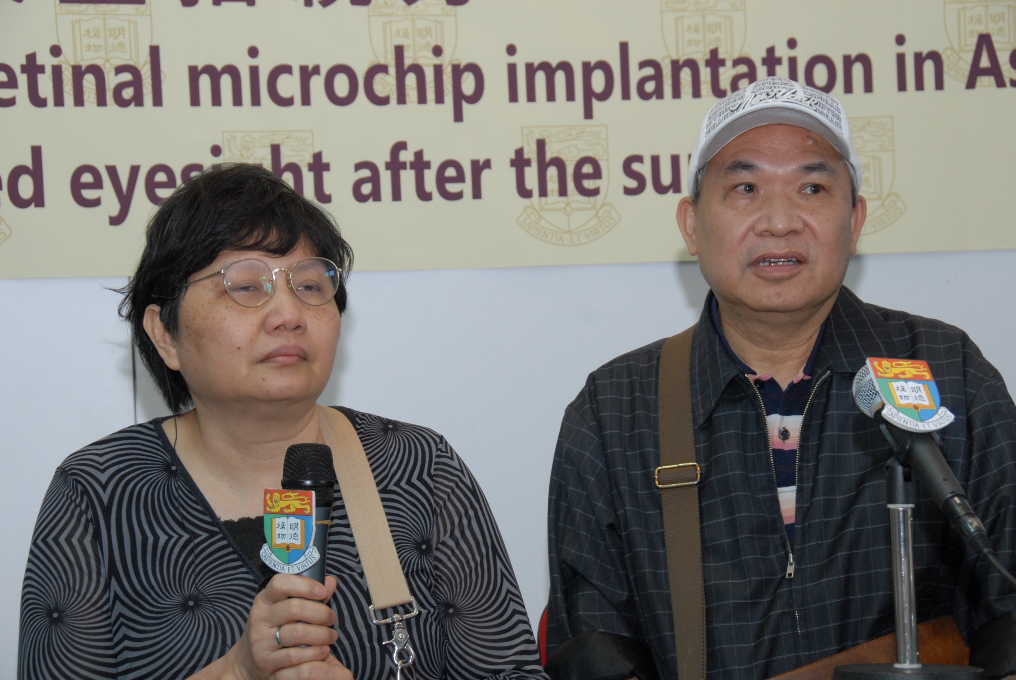 Professor David WONG says, "Having been blind for so long, Mrs Tsang has to learn to see once again. It is like a baby learning to walk." The patient has to practise hand-eye coordination and learn to control her eye movement in order to fix her sight at appropriate targets. "In Hong Kong, there are probably over 2,000 patients with retinitis pigmentosa. We wish to thank the patient support group Retina Hong Kong that helped us identifying those patients that might be suitable for this treatment."