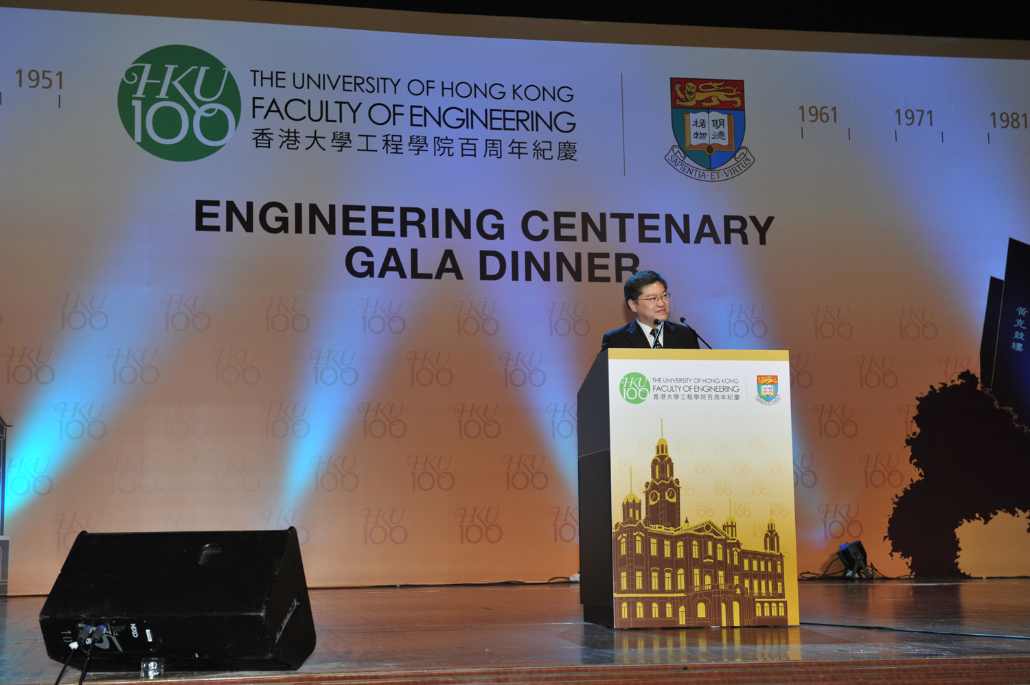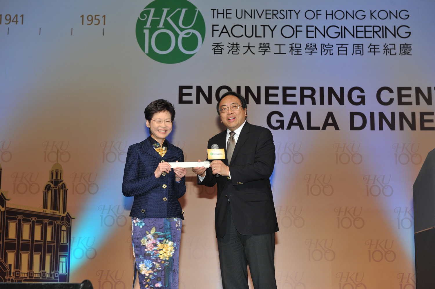 The Faculty of Engineering (Faculty) of the University of Hong Kong (HKU) held yesterday (November 6, 2012) the finale of its centenary celebrations, the “Engineering Centenary Gala Dinner”. It took place at the Grand Hall of Hong Kong Convention and Exhibition Centre (New Wing) where 1,500 guests filled over 130 tables, thanks to the overwhelming support from the Faculty’s alumni, staff, students and friends in making this memorable event a reality.