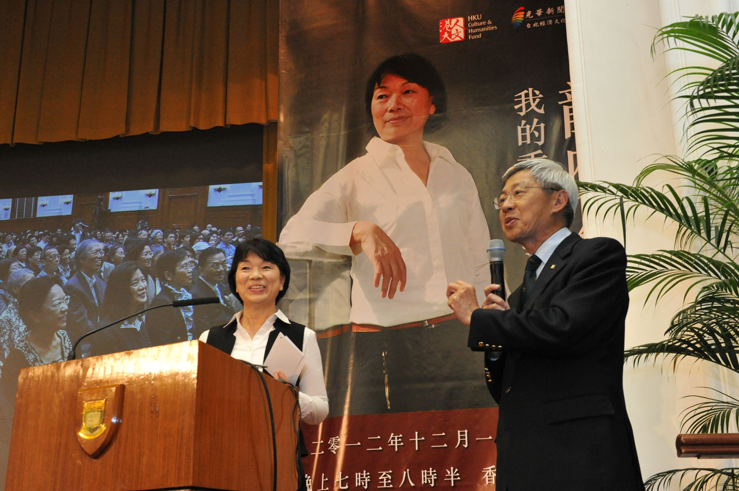 Professor Lung Yingtai, Minister of Culture of Taiwan, gave a talk entitled “My Hong Kong, My Taiwan” at Loke Yew Hall at the University of Hong Kong today (December 1). The talk was co-organised by the Kwang Hwa Information and Culture Centre.