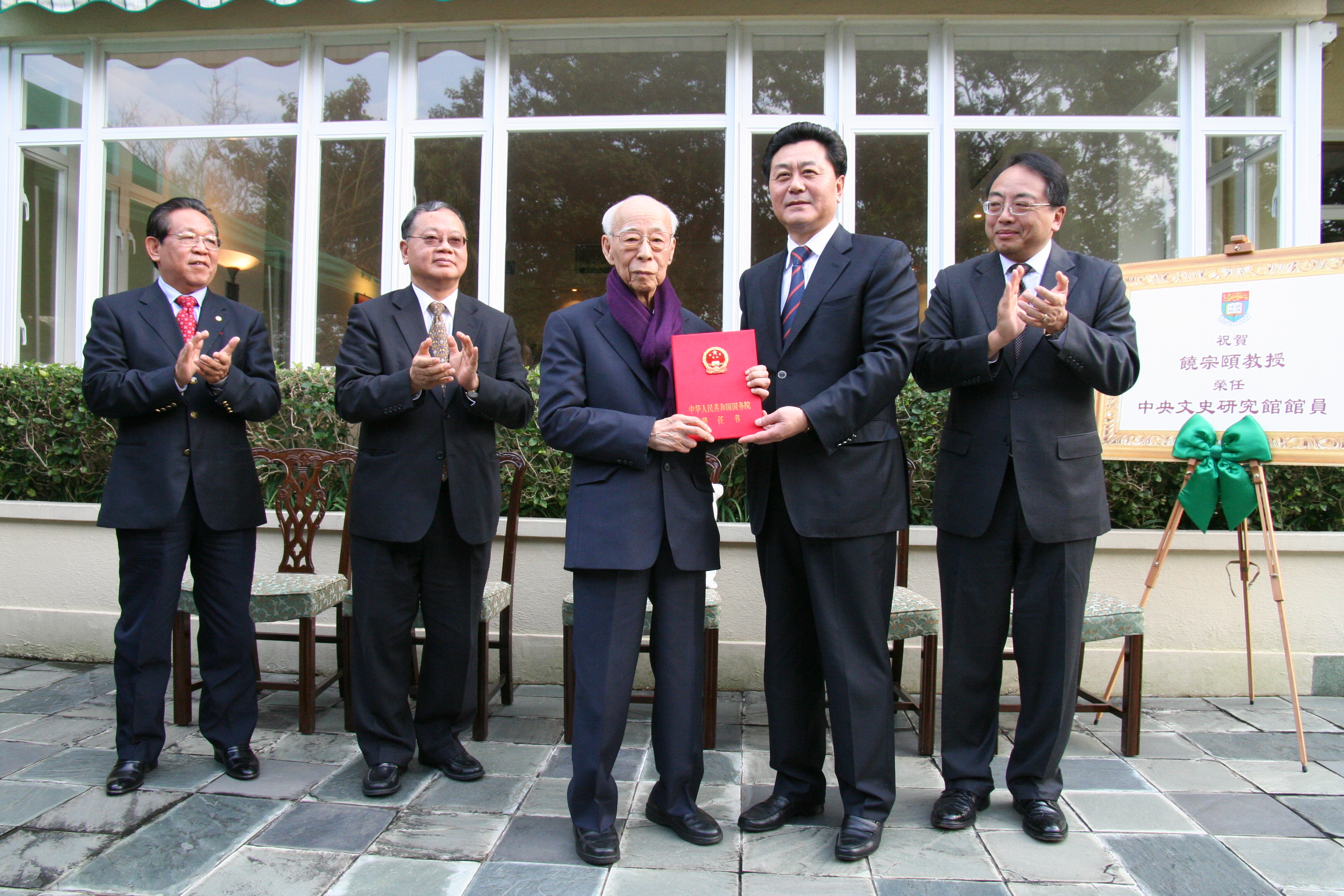 為祝賀饒宗頤教授榮任中央文史研究館館員,祝賀儀式在2月19日(星期四)下午舉行,香港大學校長徐立之教授在其大學寓所舉行茶聚。饒教授亦是第一位獲國務院聘任為中央文史研究館館員的香港學者。出席的主要嘉賓包括:中央駐港聯絡辦公室副主任李剛先生、國務院參事王國華先生、董趙洪娉女士、旅遊事務專員方舜文女士,及饒宗頤學術館之友眾會長等。
