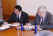 香港大學校長徐立之教授與普林斯頓高等研究院院長Peter Goddard教授進行簽署儀式