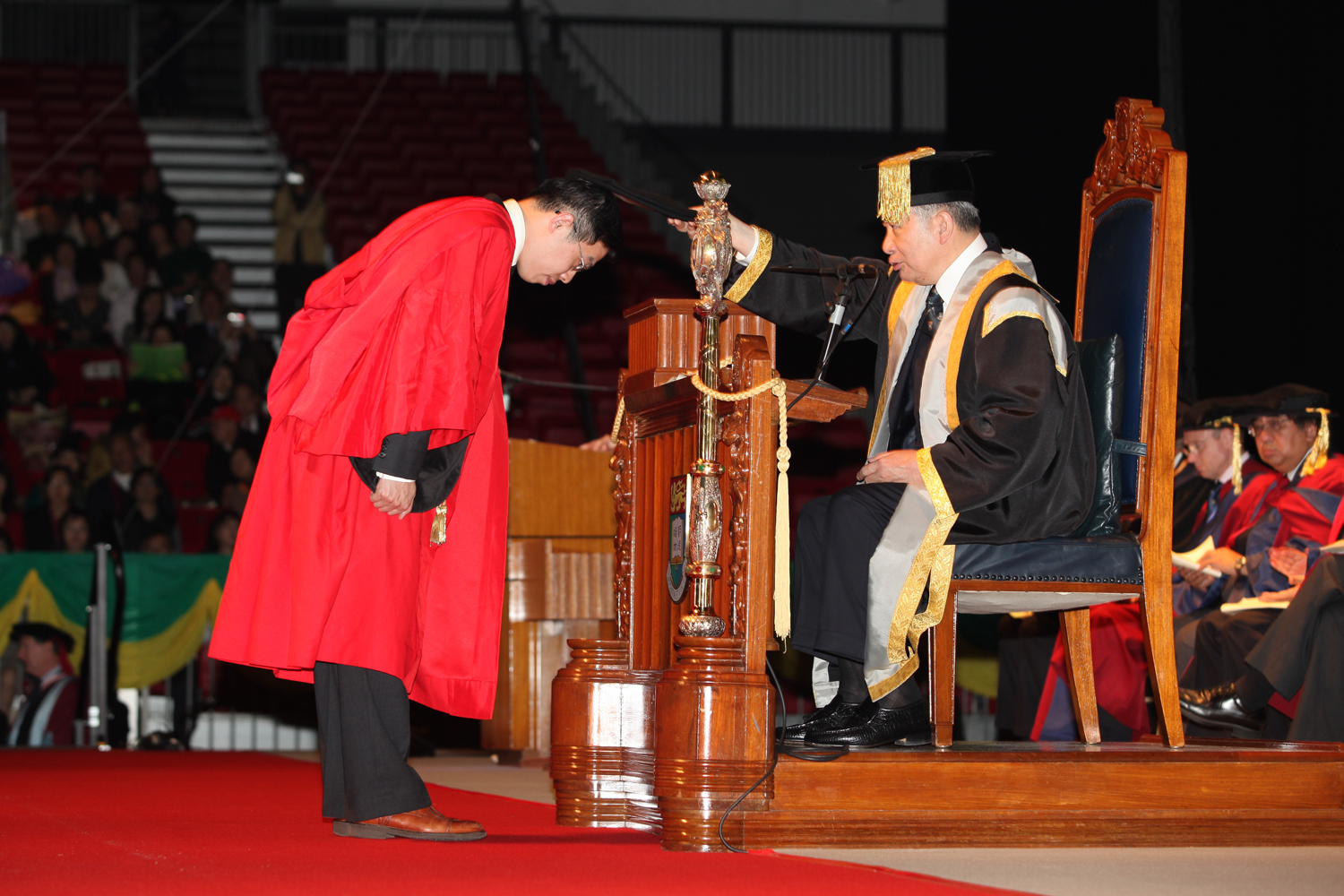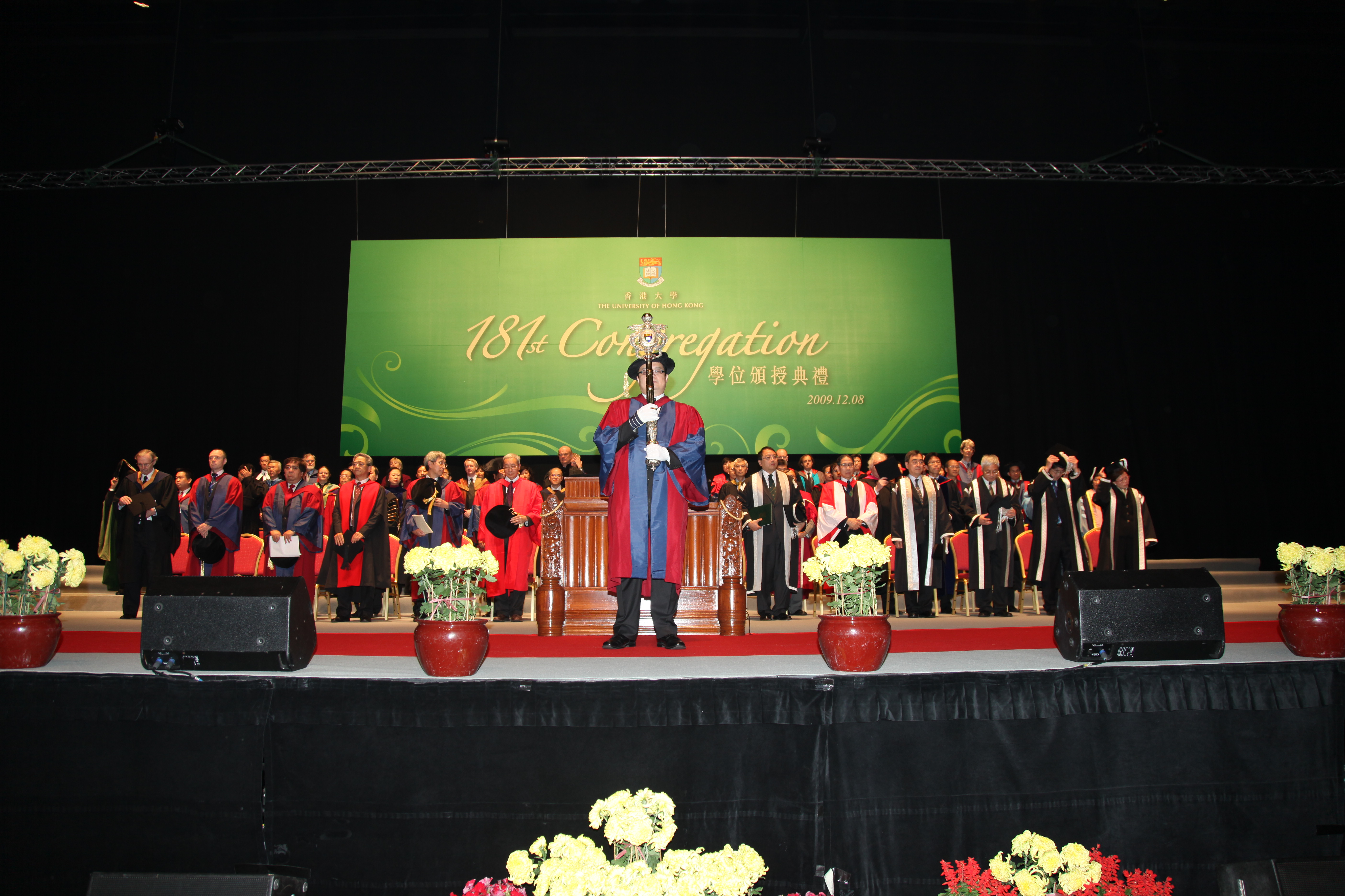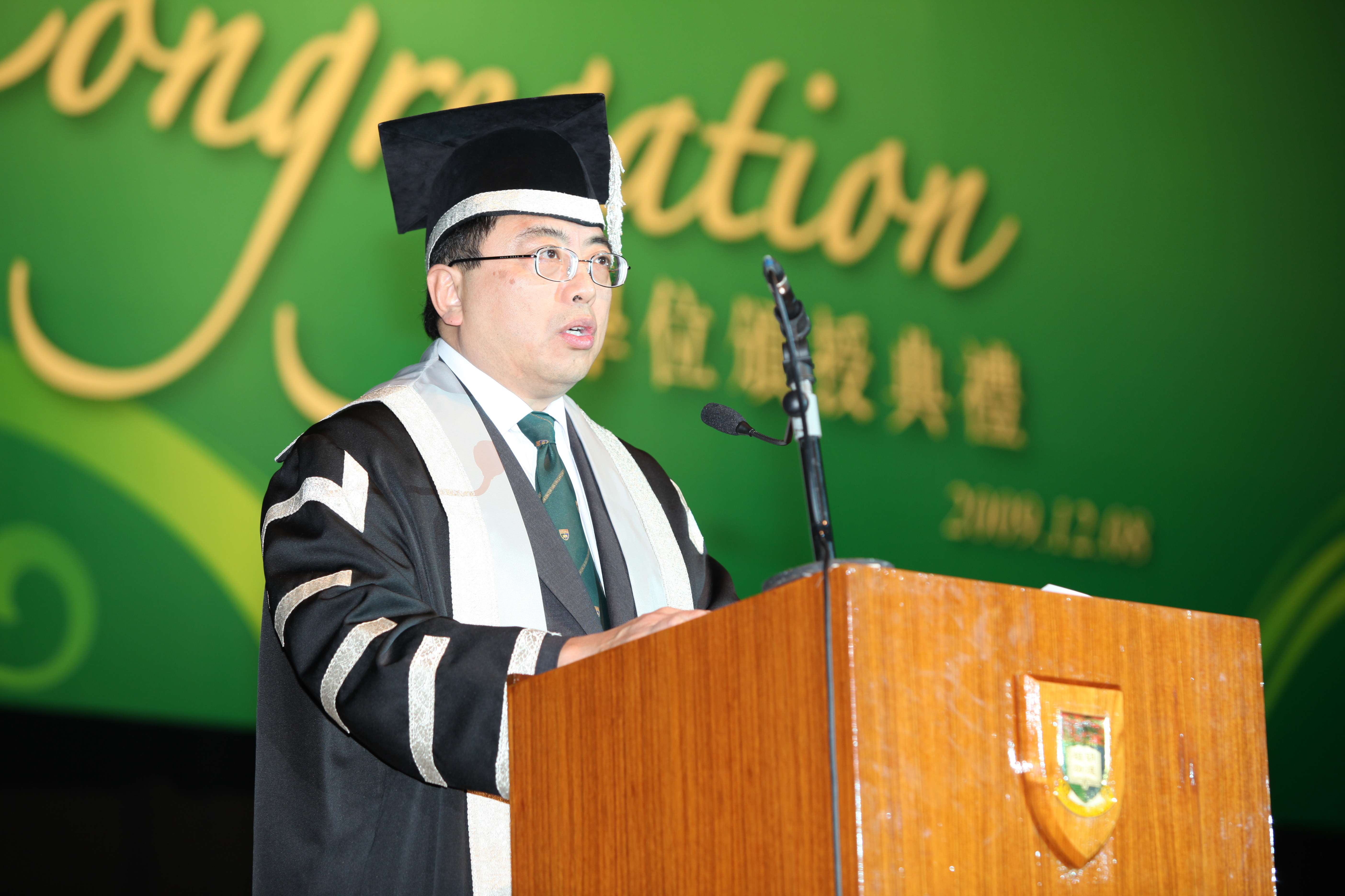 港大校長徐立之教授在典禮上致辭時,代表港大向一眾畢業生衷心祝賀。他指出, 大家現時正處身於極富挑戰的時代,世界瞬息萬變,他勉勵畢業的同學要以無比信心面對挑戰,以堅毅意志應對困難。