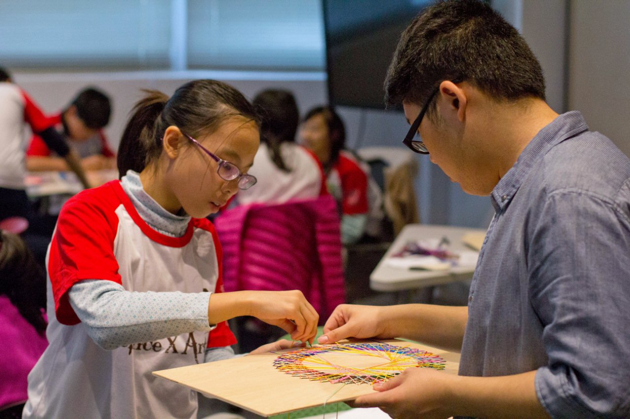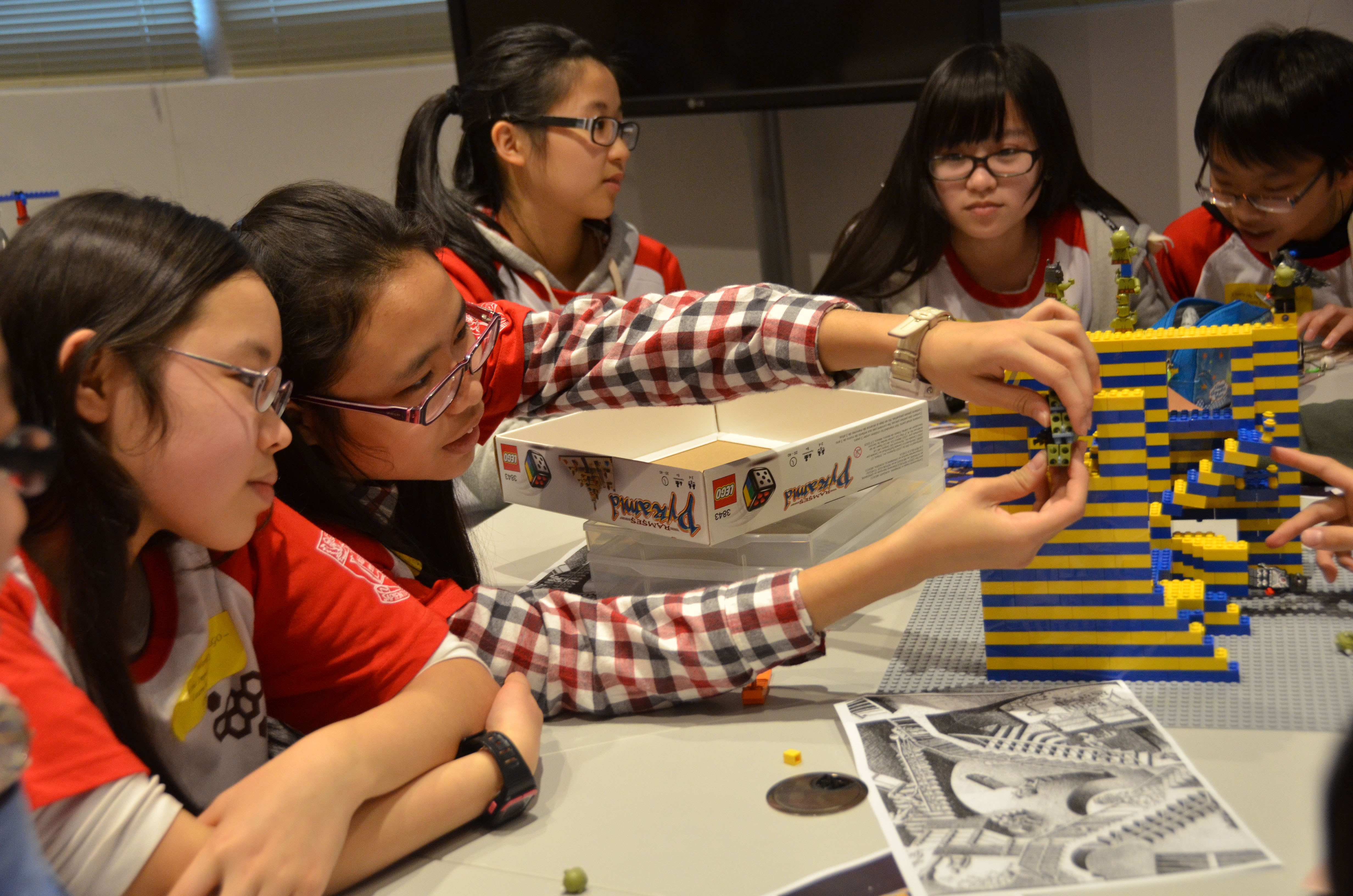 約百名初中生從百周年校園到本部校園午膳,許多學生都未曾參觀過香港大學,大學的環境對他們來說十分新鮮。午餐過後,所有學生分為四組,參加四個不同的工作坊:「捕捉實驗室的光與影」、「從藝術解構科學:柏拉圖立體、阿基米德立體及弦線藝術」、「畫布上的科學」與「 樂高之創造不可能—艾薛爾畫中的世界」。「捕捉實驗室的光與影」由新聞及傳媒研究中心的導師帶領學生在實驗室拍攝。「從藝術解構科學:柏拉圖立體、阿基米 德立體及弦線藝術」則由數學系的研究生教授初中生製作古希臘時期的立體,並以弦線製作數學方程圖形。「畫布上的科學」則由理學院副院長教授繪畫技巧,學生 以繪畫來表達對科學的感想。「 樂高之創造不可能—艾薛爾畫中的世界」則由樂高積木的導師,帶領學生以積木構作荷蘭畫家艾薛爾的圖畫,艾薛爾的作品可見許多數學概念如對稱、密鋪平面、雙 曲幾何及多面體等,學生在這個工作坊,以積木把三維世界表達二維世界。